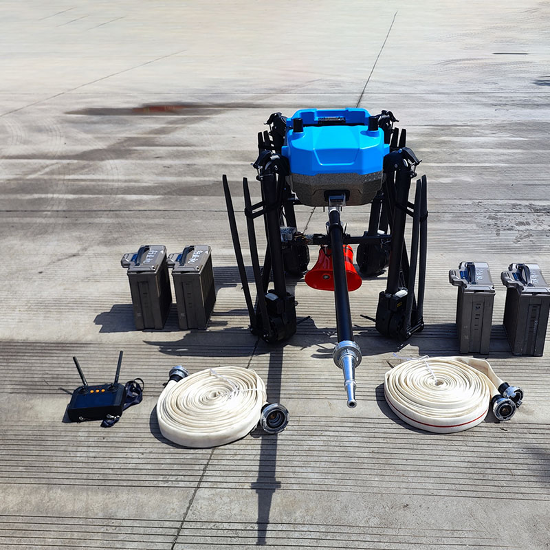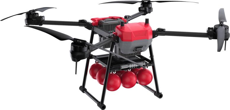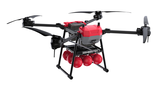 Этот пожарный дрон имеет конструкцию корпуса, подходящую для сложных условий, и способен нести достаточное количество противопожарного оборудования. Он оснащен удобным быстросъемным крюком и поддерживает одновременное применение одного или нескольких огнетушащих шаров. Он подходит для использования в таких ситуациях, как открытые здания, горные леса и фермы. Огнетушащий шар может быстро сработать после сброса и покрыть определённый участок пожара, эффективно тушая первоначальный очаг возгорания или подавляя пожар, что позволяет выиграть время для последующих спасательных операций и значительно повысить эффективность тушения пожаров.