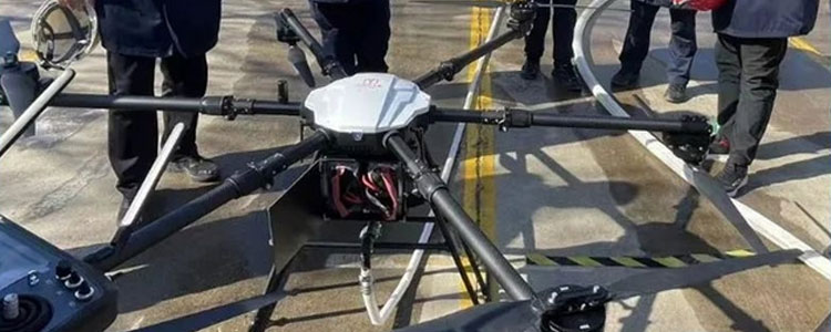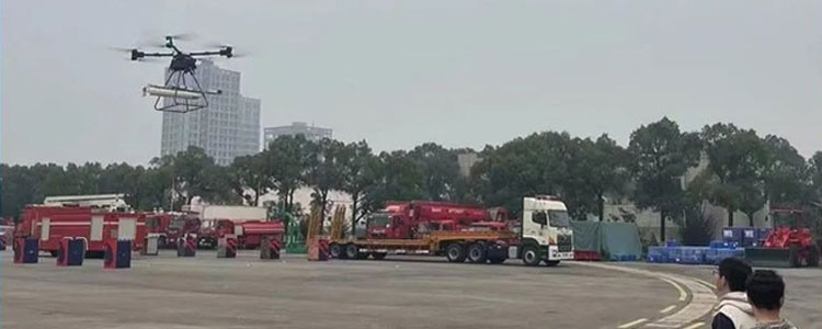 Разработанный для тушения пожаров на высотных городских зданиях, дрон выполняет распыление воды с большой высоты, используя пожарные рукава. Он в полной мере реализует преимущества удаленности оператора от места пожара, что обеспечивает безопасность пожарных. Водяной пояс этой системы пожаротушения изготовлен из полиэтиленового шелка – сверхлегкого, термостойкого, коррозионностойкого и прочного материала. Повышение давления подачи воды увеличивает дальность распыления.